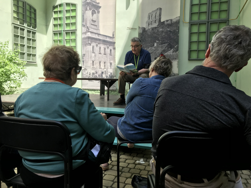Equally as dramatic were readings of Bruno Schulz in Drohobych and Nobel prize-winning Shmuel Yosef Agnon in Buczacz, as well as in Chernivtsi, where we read and discussed the works of Paul Celan, Aaron Applefeld, Rosa Auslander, Itzik Manger, and Dan Pagis. The Jewish literature of the region is a rich tapestry that exists in multiple languages—Yiddish, Polish, German, and Hebrew—and is one that reflects the time and place in which it was created. To experience the literature in its birthplace brought new dimension to its meaning.