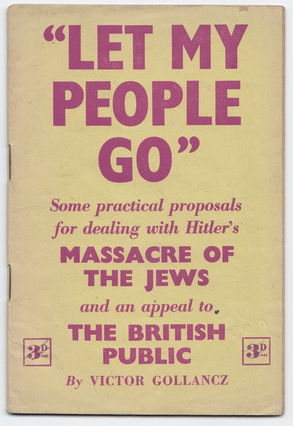 This pamphlet, a best-seller for his publishing house, was a call to action. It described Nazi atrocities and the mass murder of Jews, and readers were urged to write to their representatives in Parliament to demand that immigration regulations should be relaxed for Jewish refugees and that “the boldest possible measures of rescue adopted.”